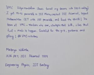 Want your IIT-JEE dream to come true? With top-class coaching for students seeking to excel in JEE Main and JEE Advanced, Vidyamandalam Classes has helped scores of rankers. Boasting expert faculty, well-proven methodologies, and comprehensive study materials, our classes cater to all learners, from high school student to 12th-grade dropper to online learner, with personalized guidance. Our result-oriented approach makes you stand ahead in preparation. Join Vidyamandalam Classes today and begin your journey to the success story of IITs. Achieve your desires with India’s most trustworthy IIT-JEE coaching institution!